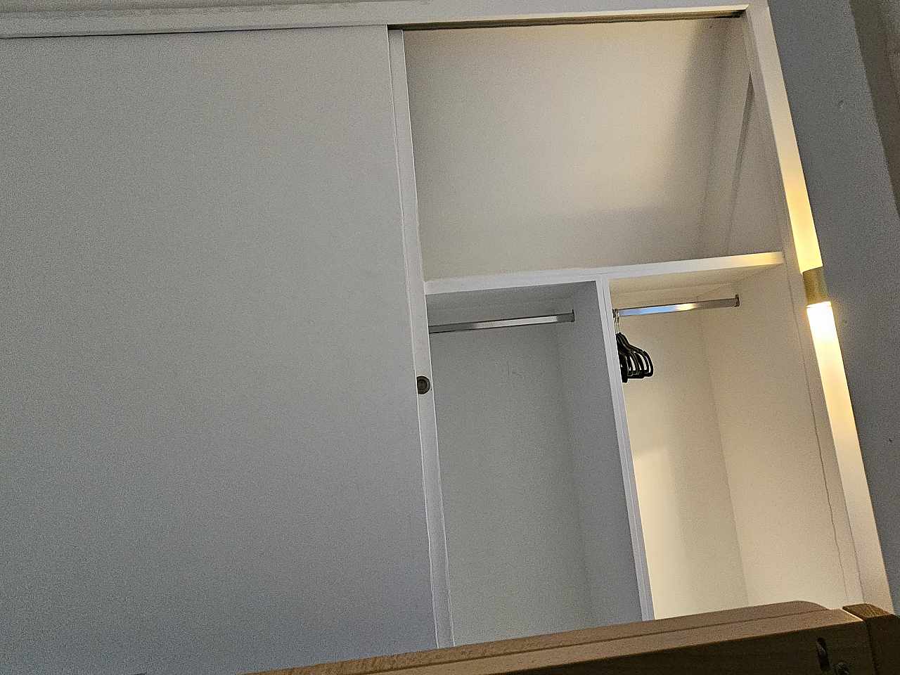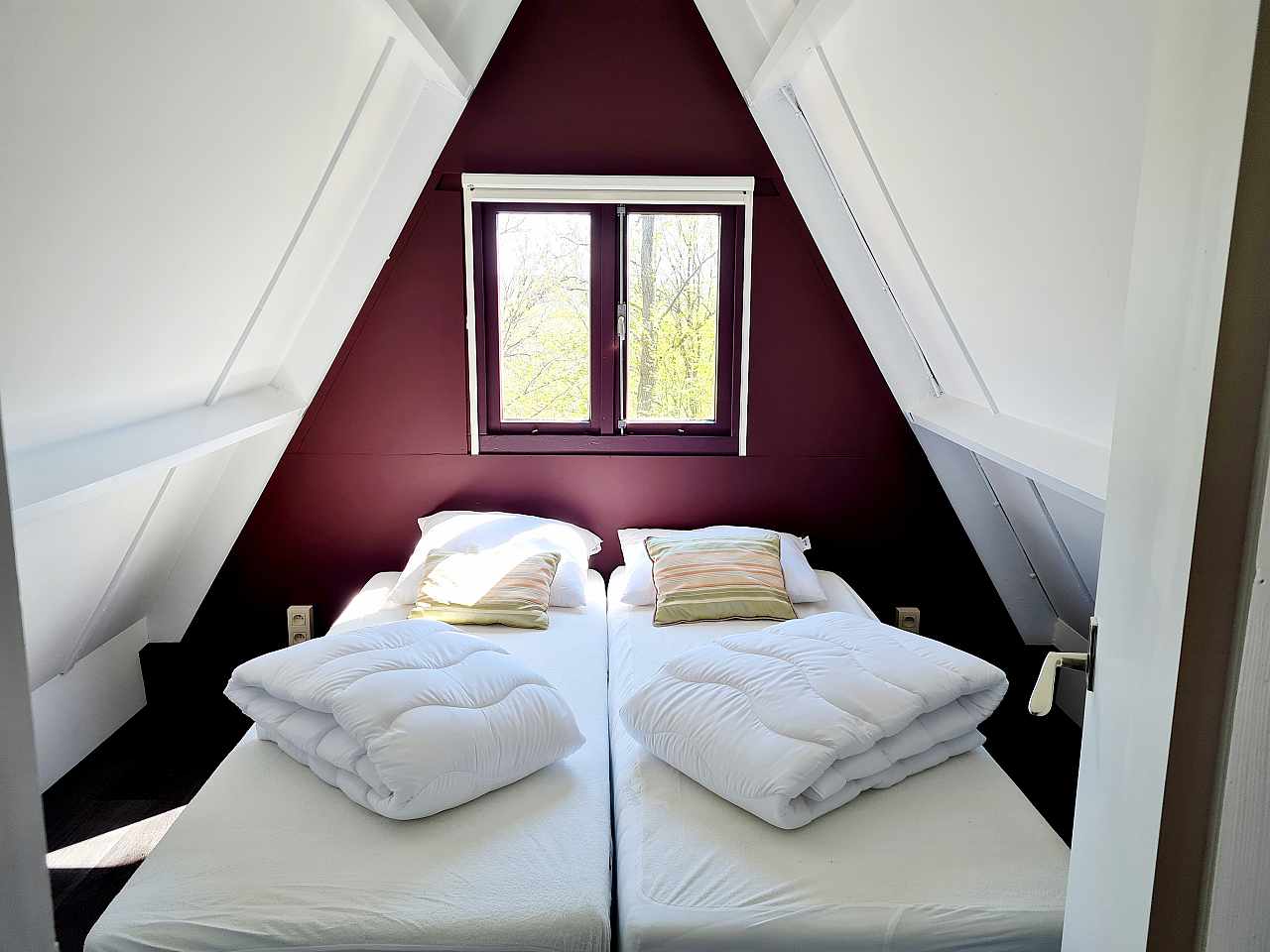 L'étage supérieur se compose de 2 chambres à coucher avec 2 lits chacune. Sur le palier, il y a un placard pour ranger les vêtements.
