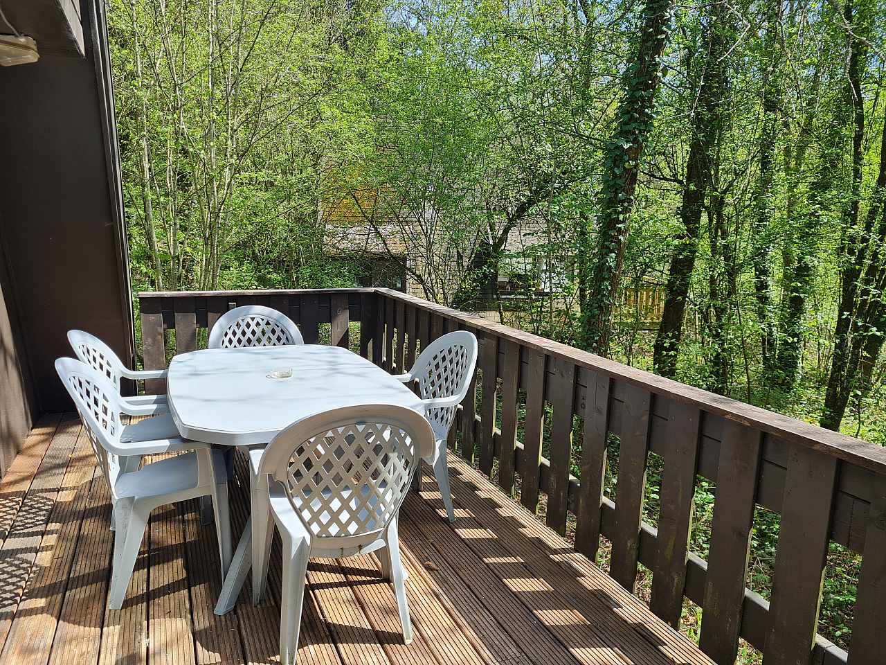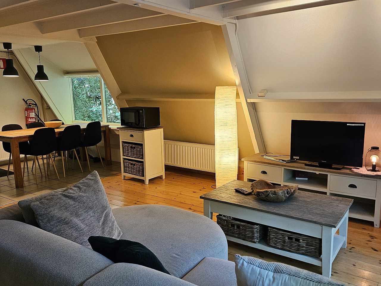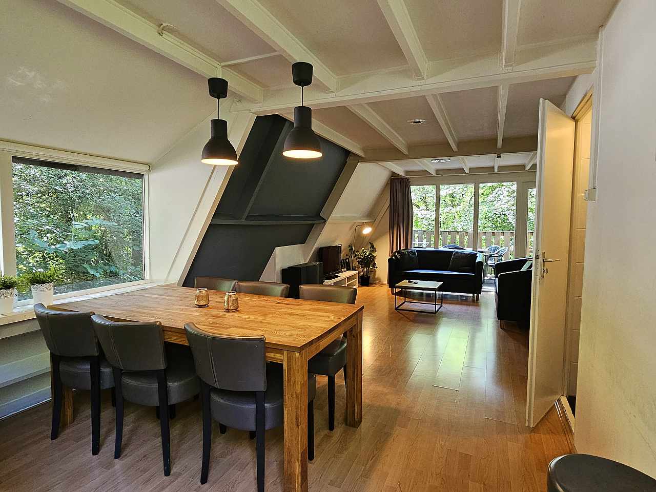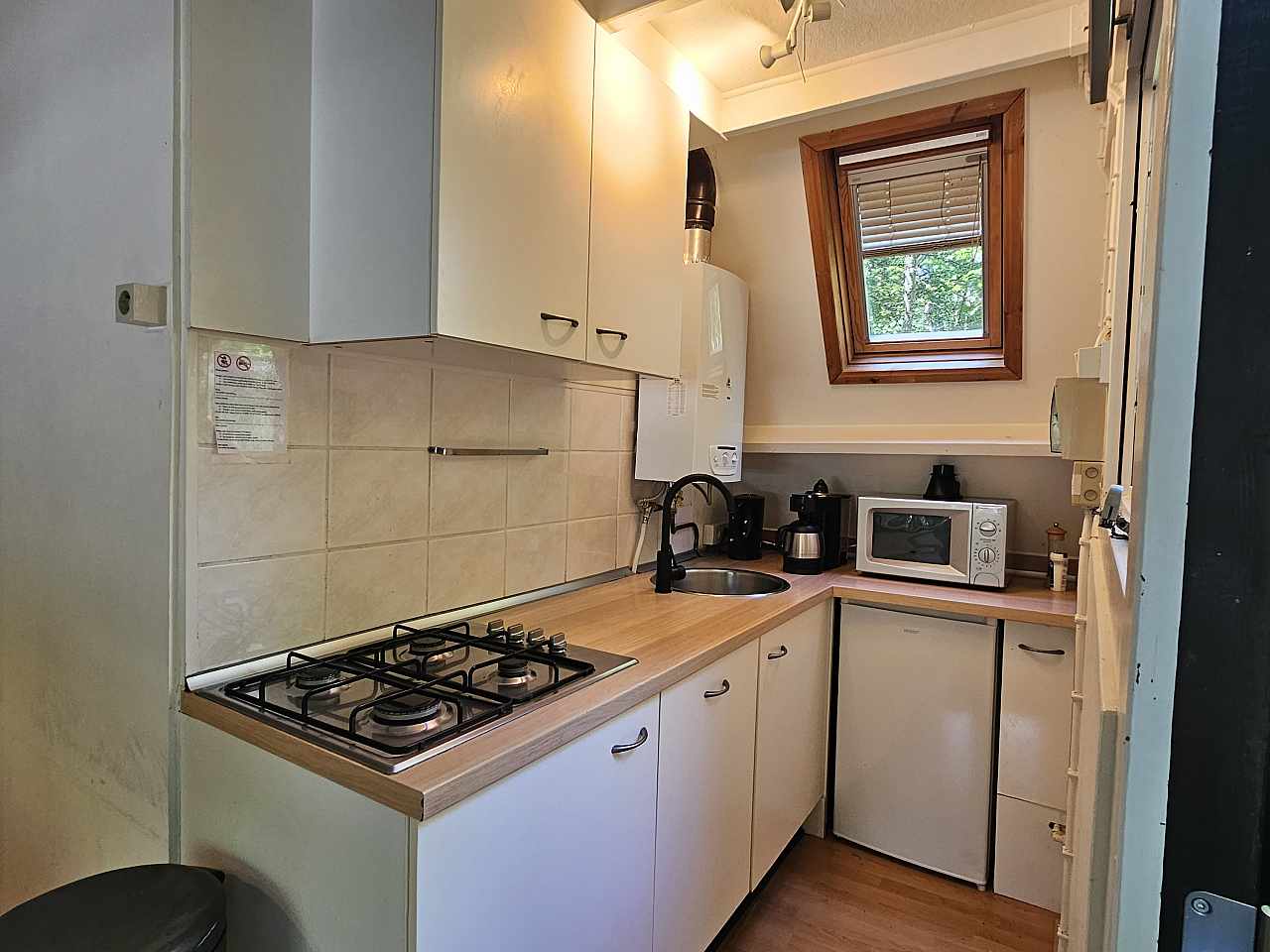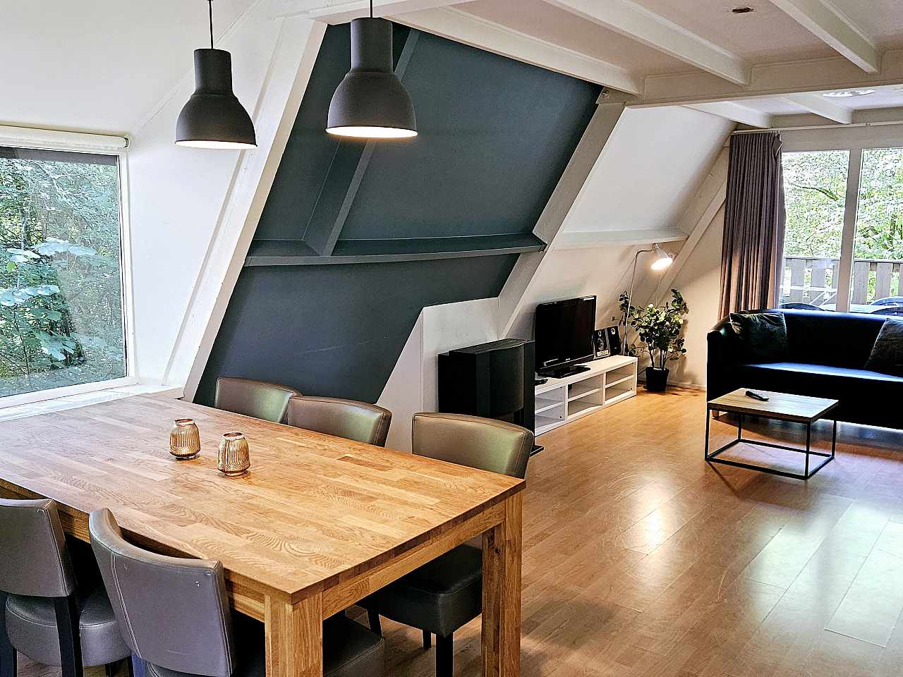 Door het aparte toegangspadje geniet deze chalet van veel privacy. De landelijke inrichting komt duidelijk tot uiting in de zorgvuldig gekozen meubels en de warme uitstraling van de houten vloer in de leefruimte. Samen zorgen deze elementen voor een sfeervolle en comfortabele ambiance waarin u helemaal tot rust kunt komen. De chalet wordt verkocht met de volledige imboedel