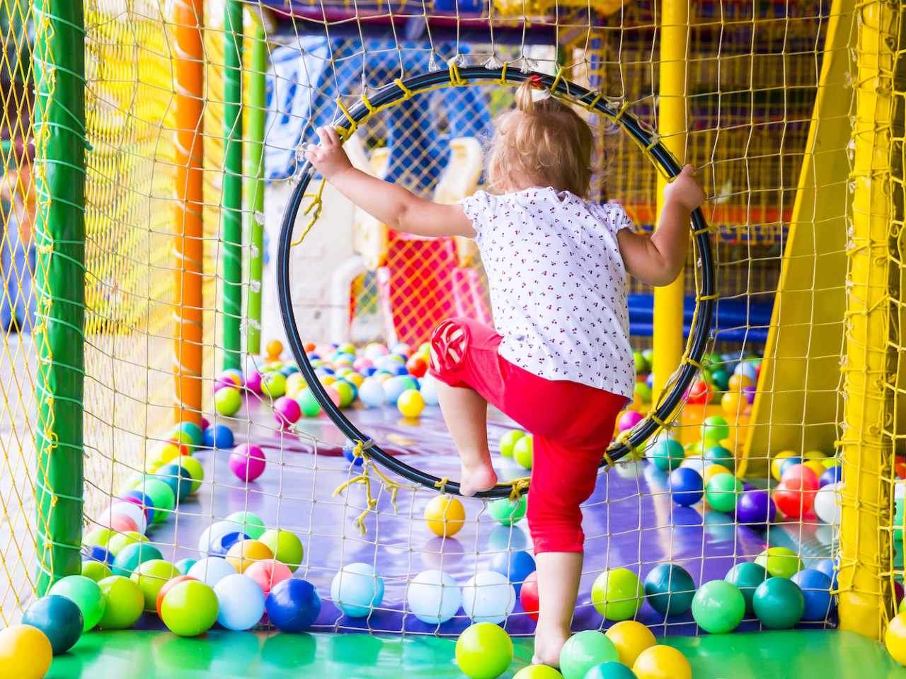 Een binnenspeeltuin voor kinderen met een apart gedeelte voor de allerkleinsten.